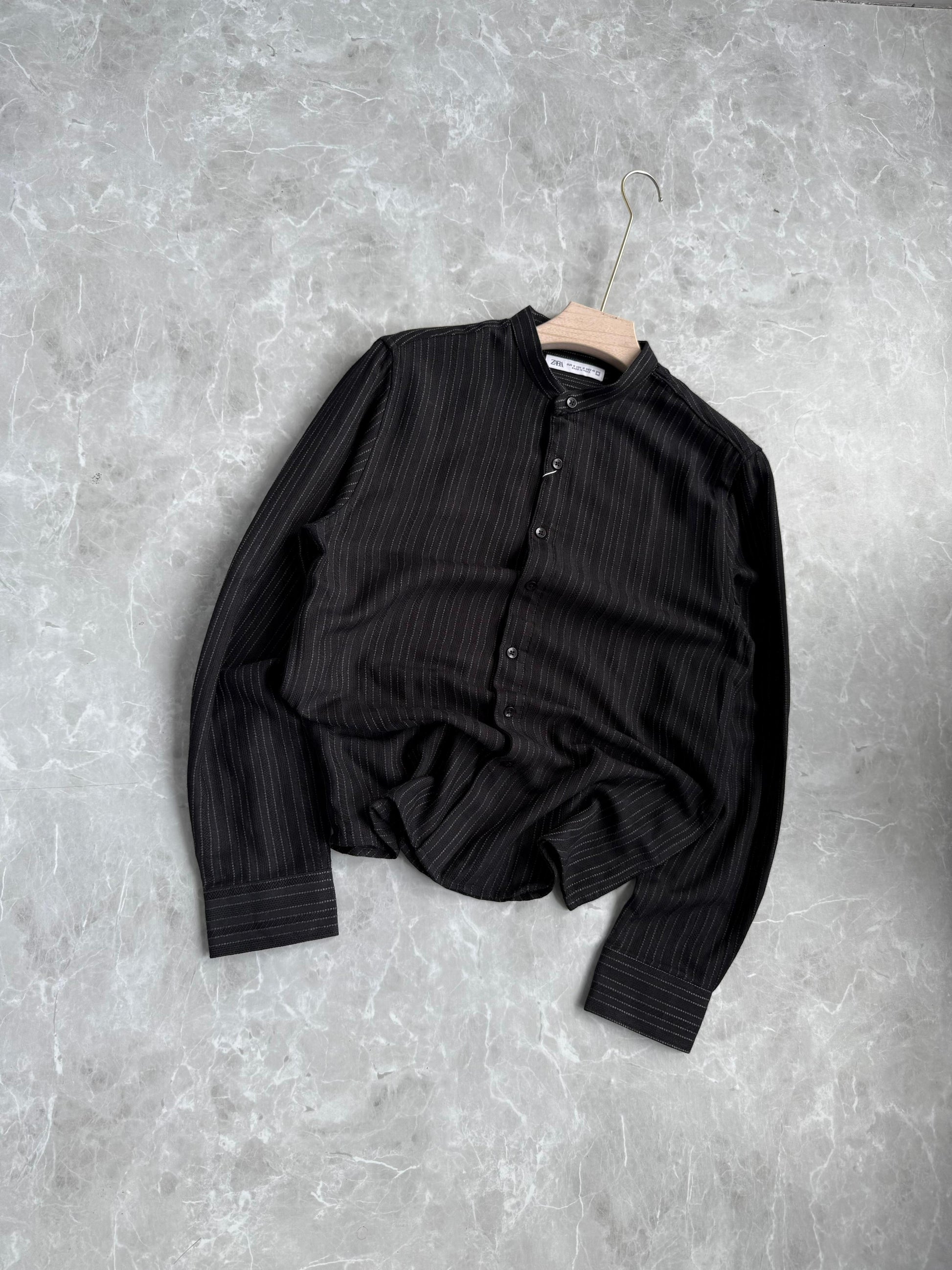 BLACK IMPORTED MANDRIAN COLLAR SHIRT