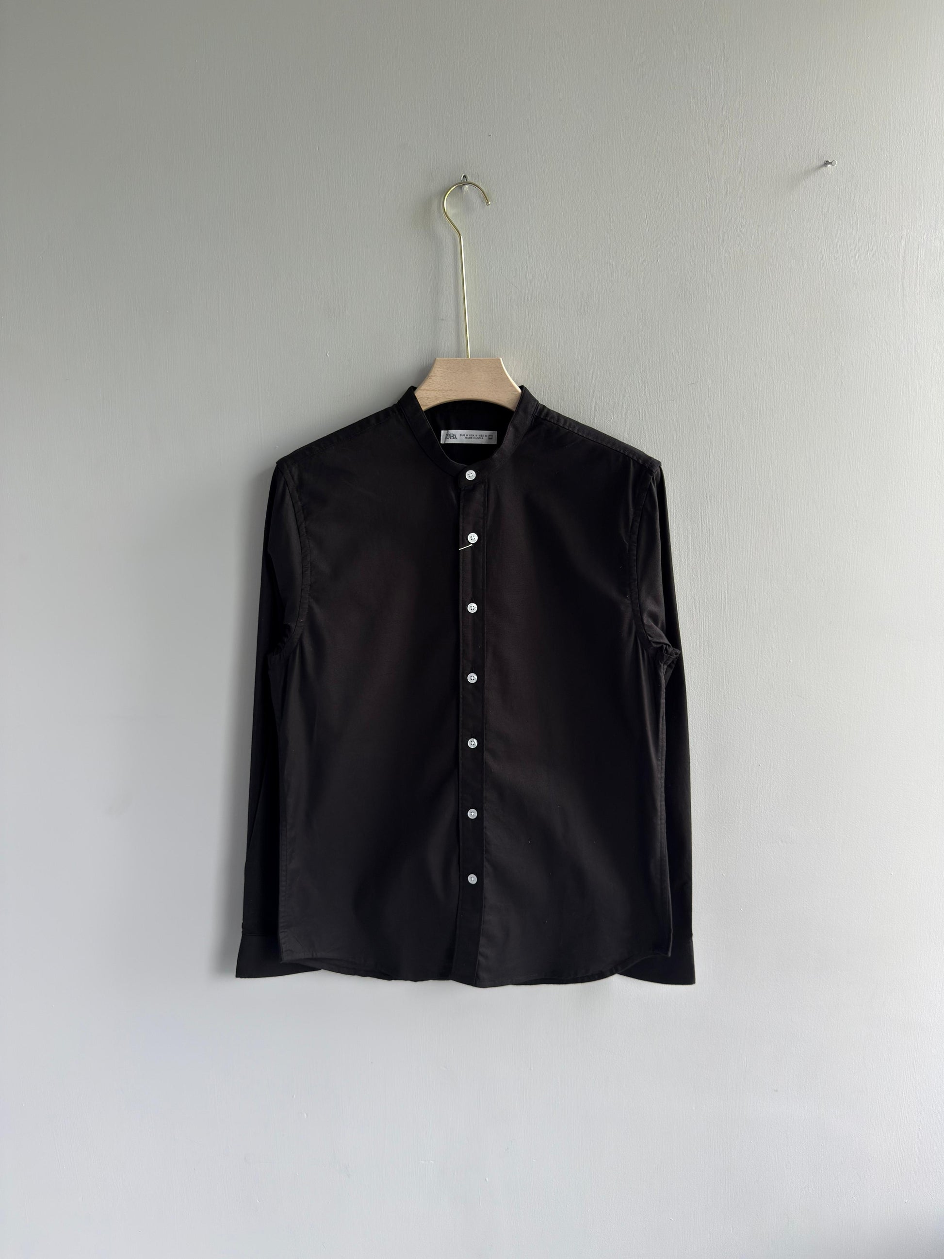 Crafted for modern sophistication, the Black Mandarin Oxford Shirt features a sleek mandarin collar and premium Oxford fabric that offers both durability and comfort. Its tailored fit enhances your silhouette, making it ideal for professional settings or refined casual wear. This shirt combines minimalist design with high-quality craftsmanship for a versatile wardrobe essential.