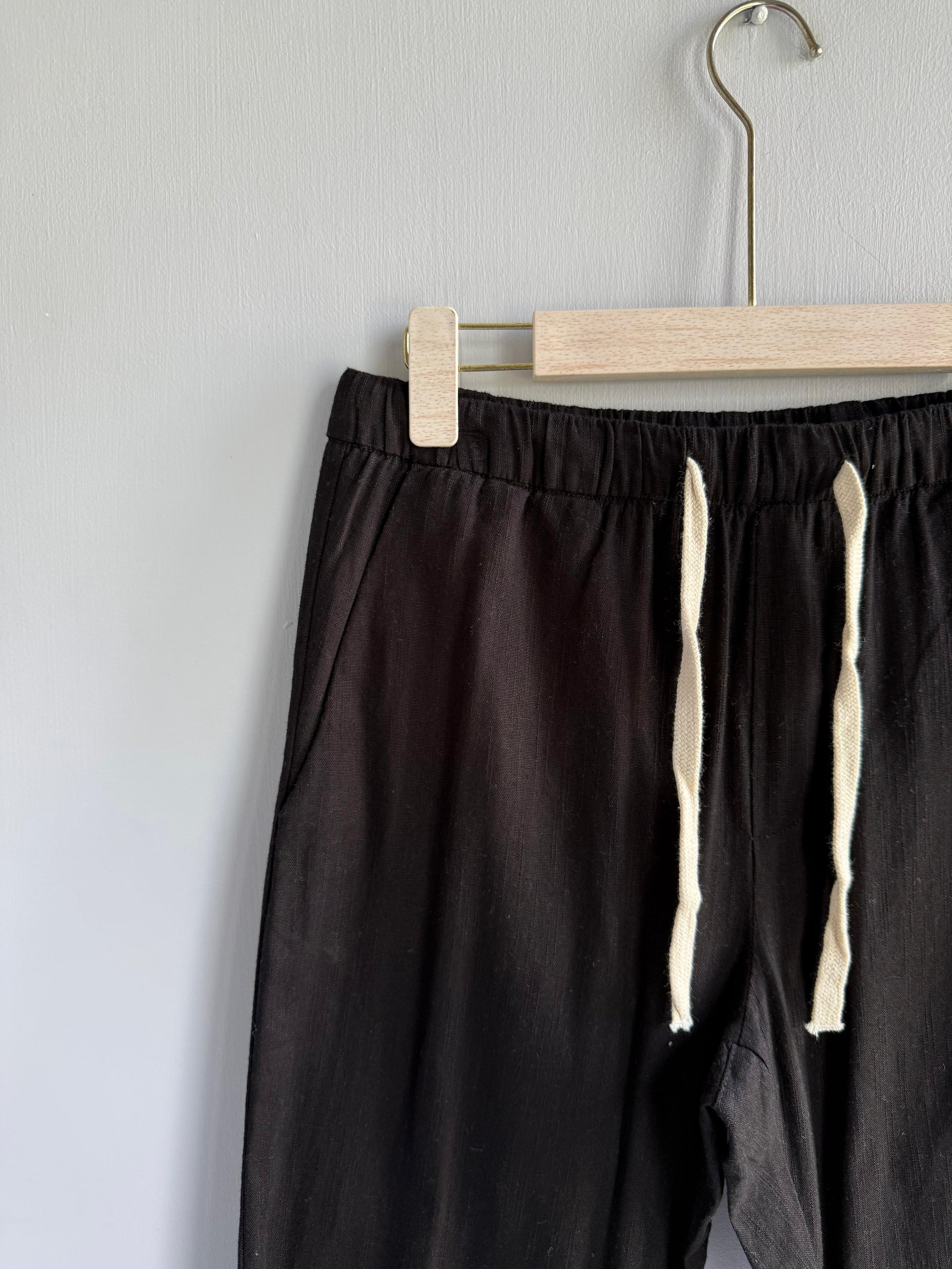 These black relax fit linen trousers offer exceptional comfort and breathability, making them ideal for casual wear. Their versatile style pairs effortlessly with all shirt models, providing a polished yet relaxed look suitable for various occasions. Crafted to ensure ease of movement, they are a smart choice for anyone seeking both style and functionality in everyday attire.
