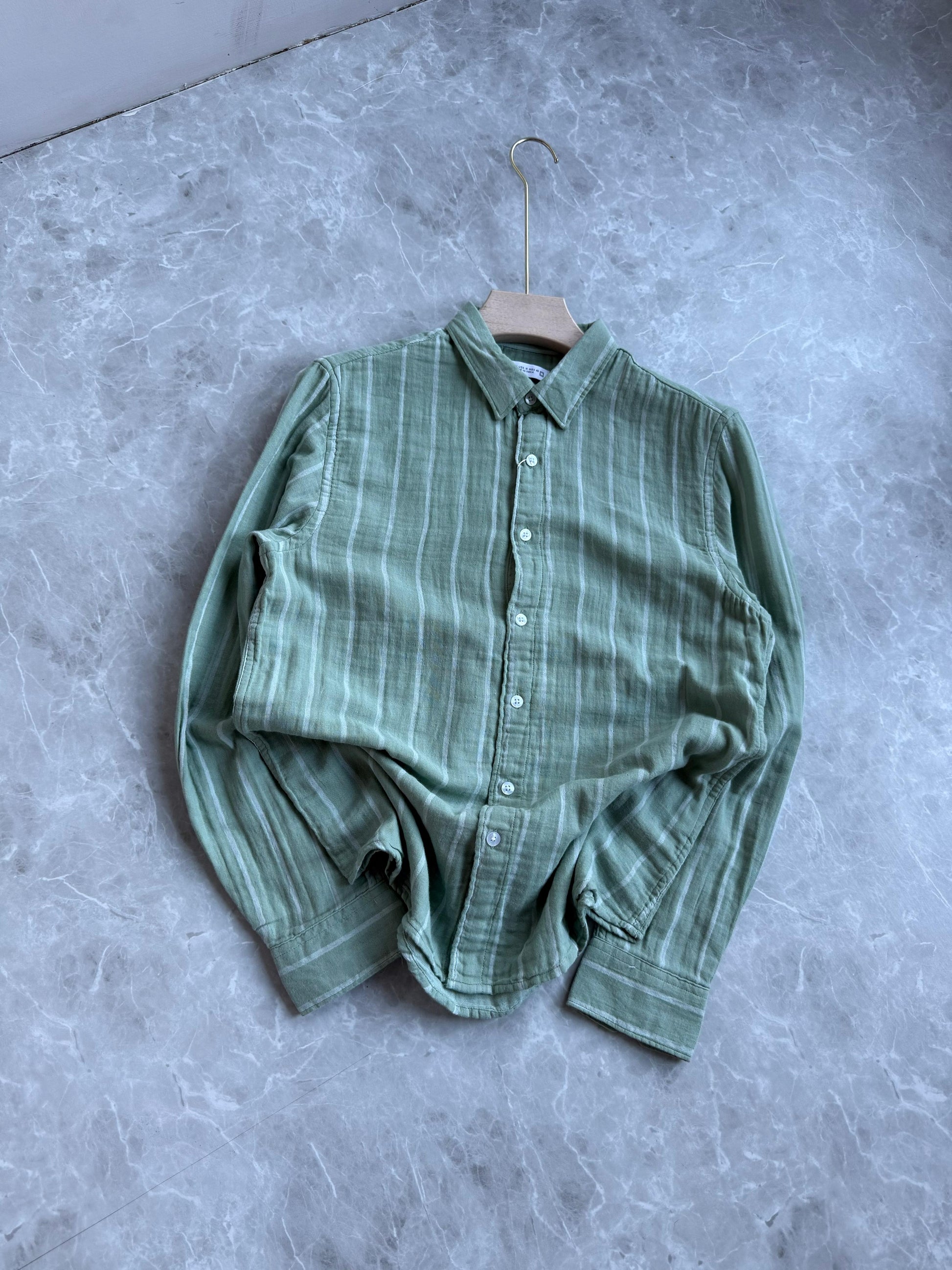 Elevate your casual wardrobe with this Green Linen Stripe Shirt, expertly designed to pair seamlessly with mom fit denim trousers. Crafted from breathable linen, its subtle stripe pattern adds visual interest while maintaining a relaxed, refined look. This shirt’s lightweight fabric ensures all-day comfort, making it ideal for everyday wear or casual outings. Combine it with mom fit denim trousers for a balanced silhouette that highlights contemporary style with effortless ease.