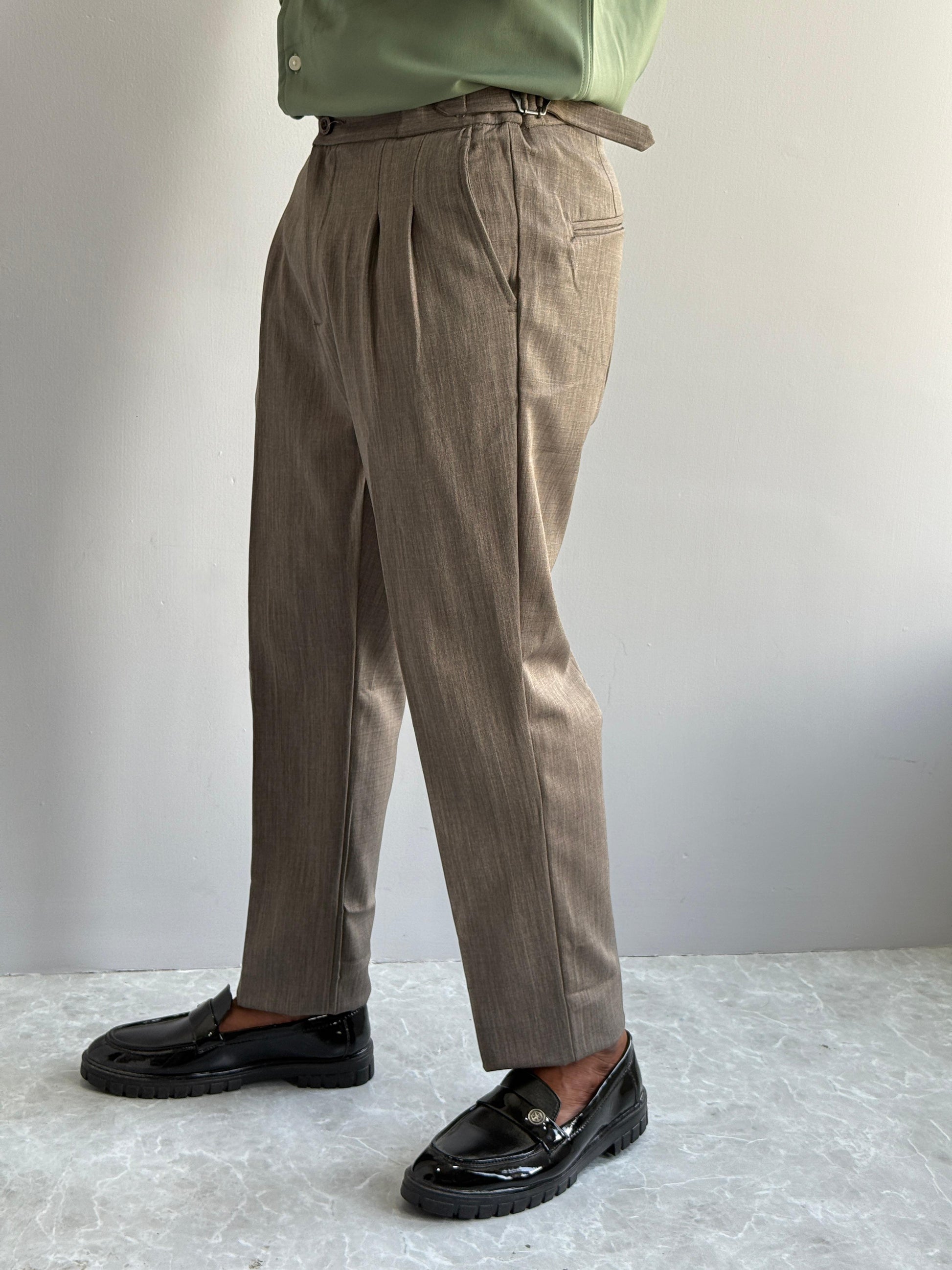 These Waist Adjustment Gurkha Trousers combine traditional style with modern functionality. Designed with adjustable waist features, they ensure a comfortable and precise fit throughout the day. Their versatile design pairs effortlessly with both casual polo tees and formal wear, making them an expert choice for a polished yet relaxed look. Crafted for durability and style, these trousers are ideal for those seeking adaptable wardrobe staples.